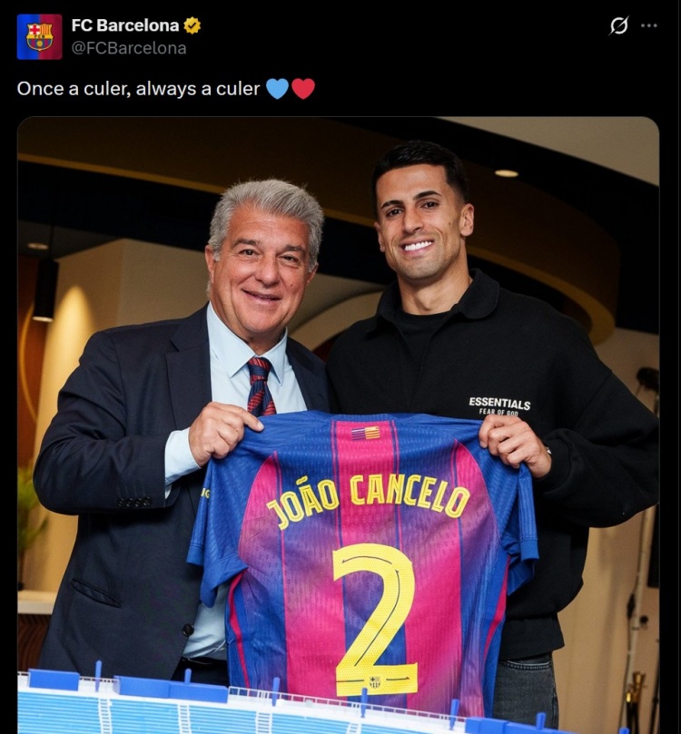 1月14日讯 若昂·坎塞洛重返巴塞罗那,渴望再次为球队赢得荣誉。这位葡萄牙国脚带着更大的热情和期待回到了他从未停止关注和支持的俱乐部。