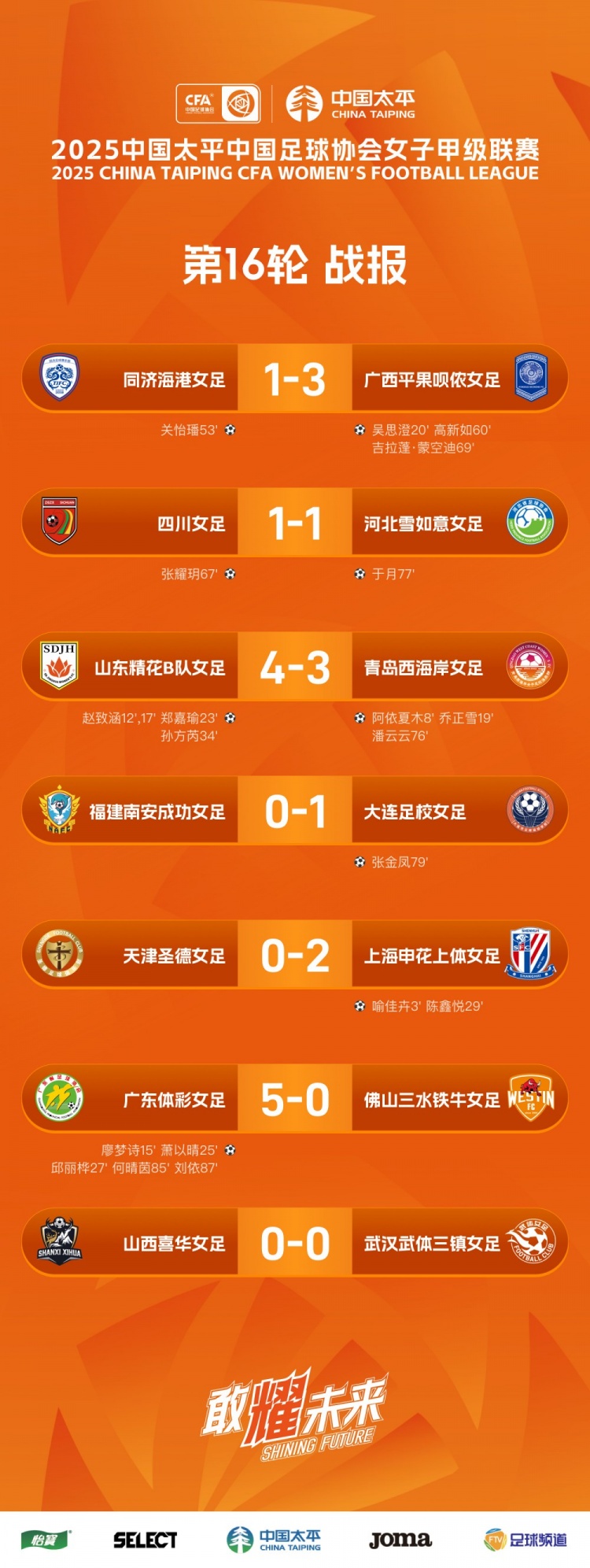 kaiyun-2025女甲联赛第16轮战报、积分榜、射手榜